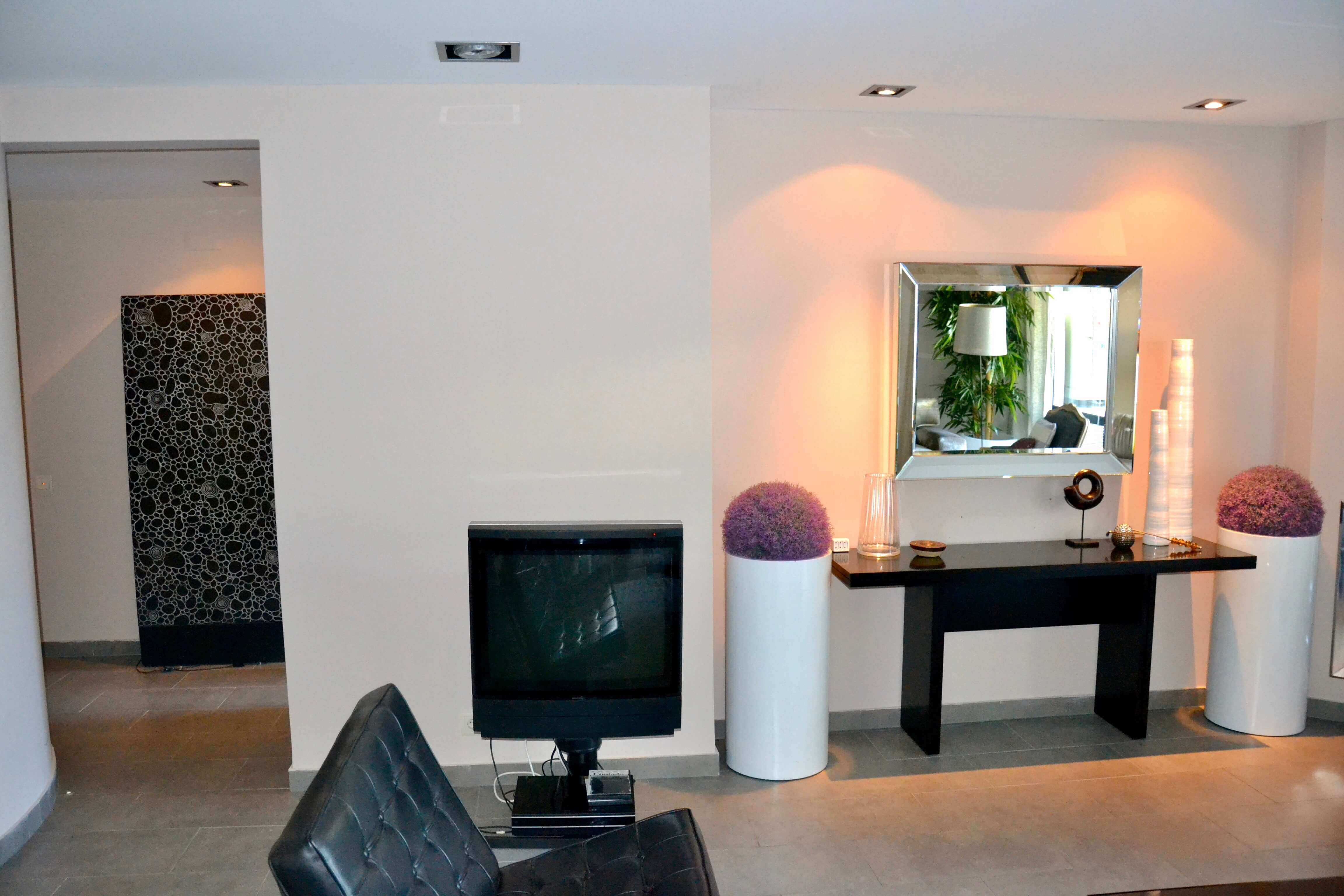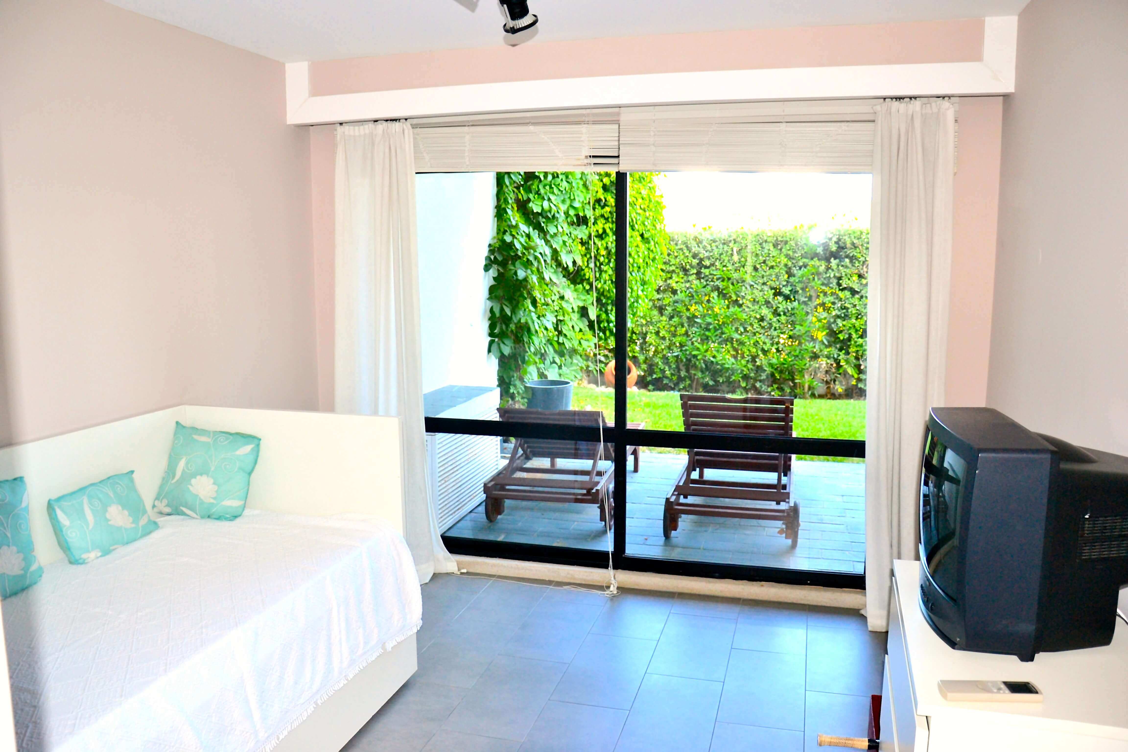 A sala está equipada com TV por satélite, DVD e CD. Existe também acesse a Wi-Fi e o apartamento tem ar-condicionado. A unidade de ar condicionado também tem a opção de ar quente se precisar nos poucos meses de inverno. No jardim privado existe uma mesa com cadeiras e espreguiçadeiras. Existem espreguiçadeiras comuns na piscina comum, que fica a 100 metros do apartamento.