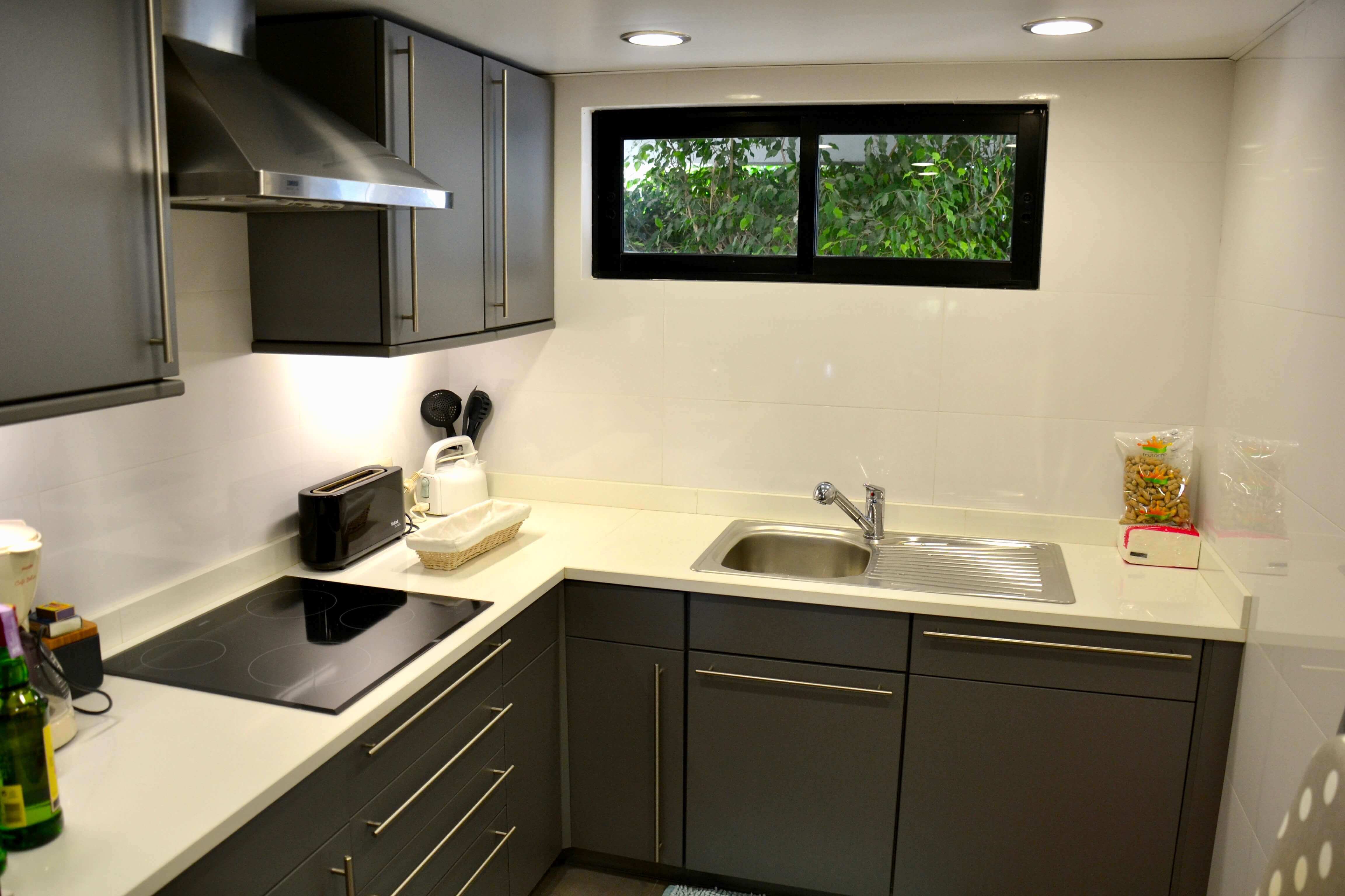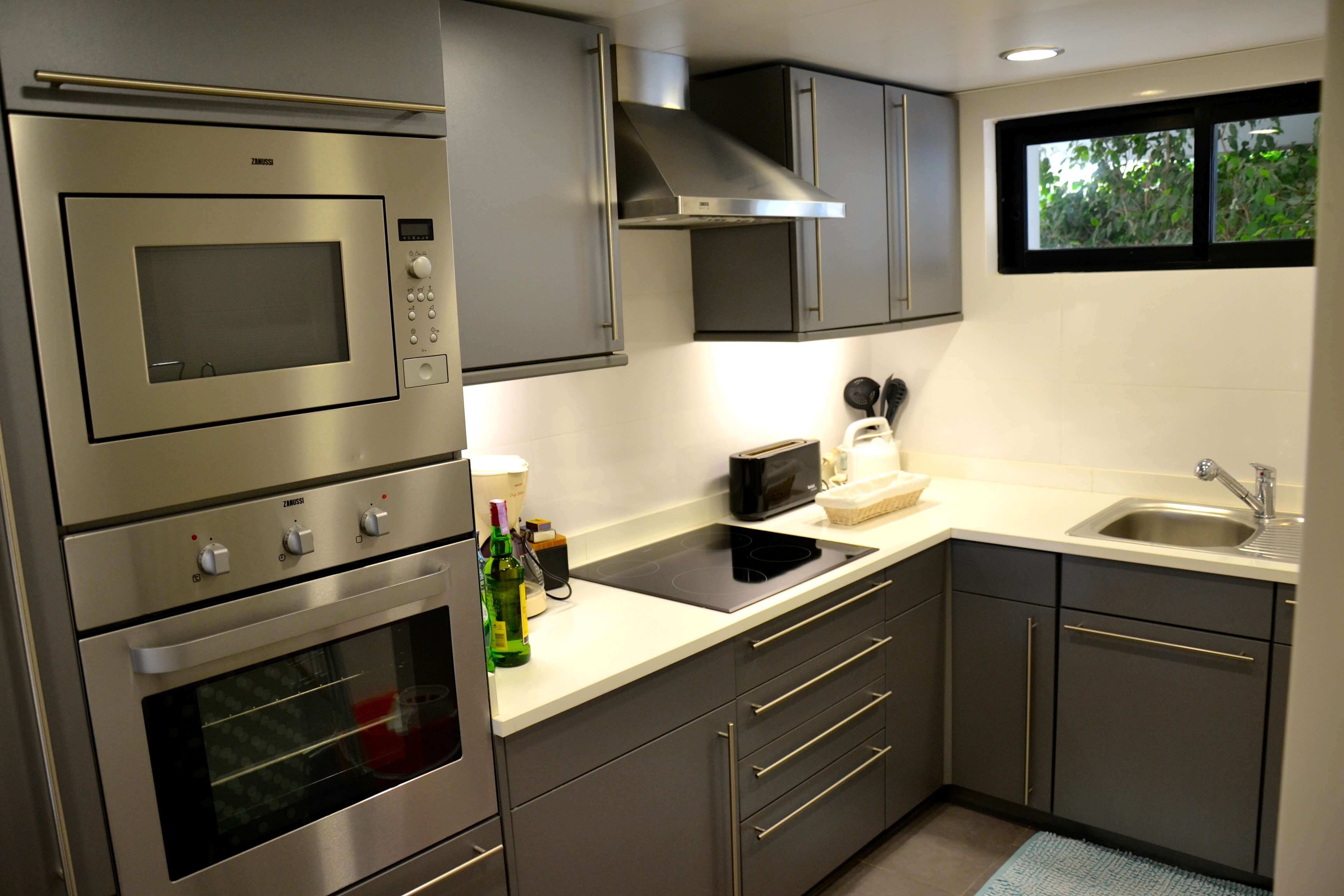 A cozinha vem com equipamentos de alta qualidade (tudo o que precisa) e está bem organizado com uma escotilha de serviço para a área de jantar.