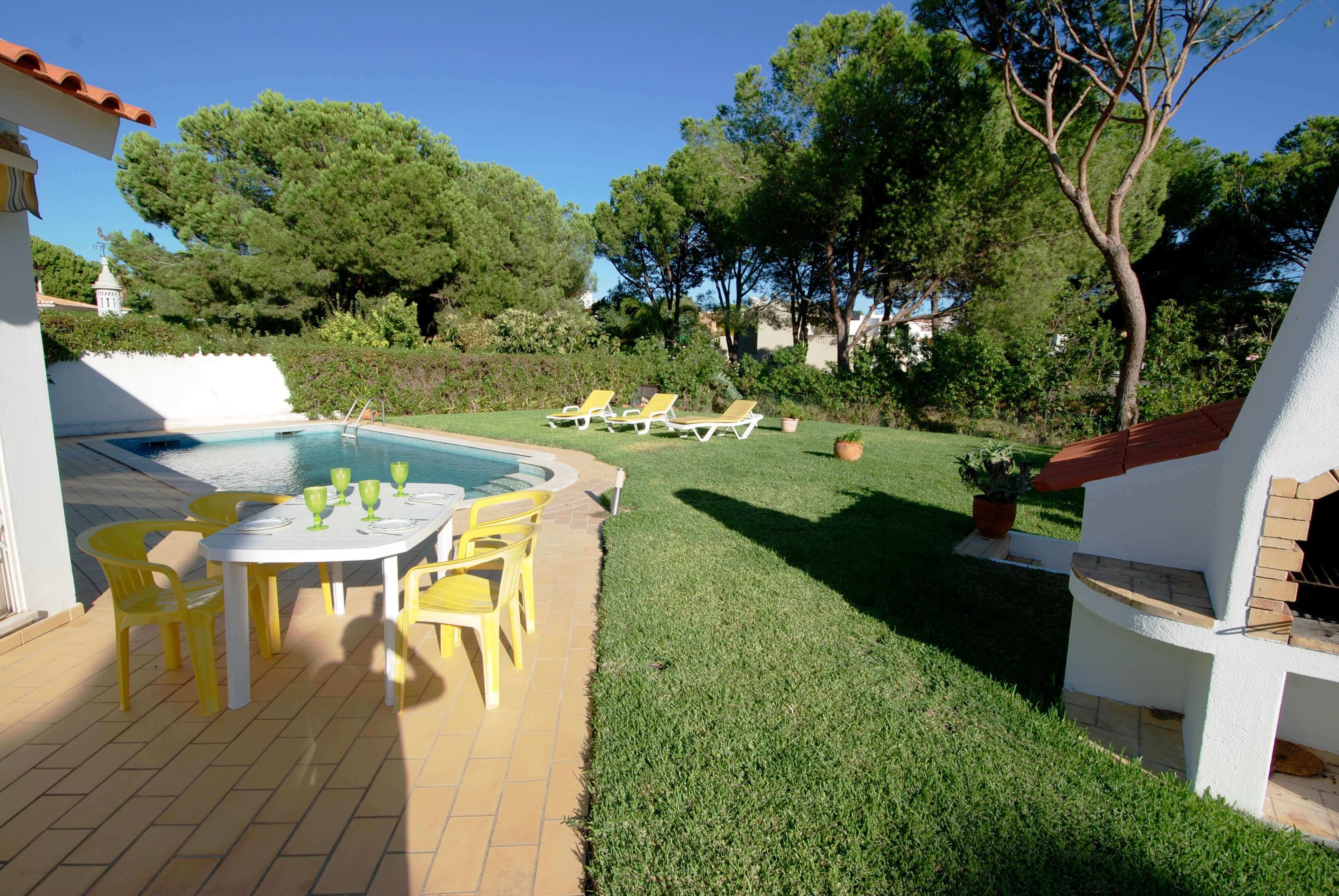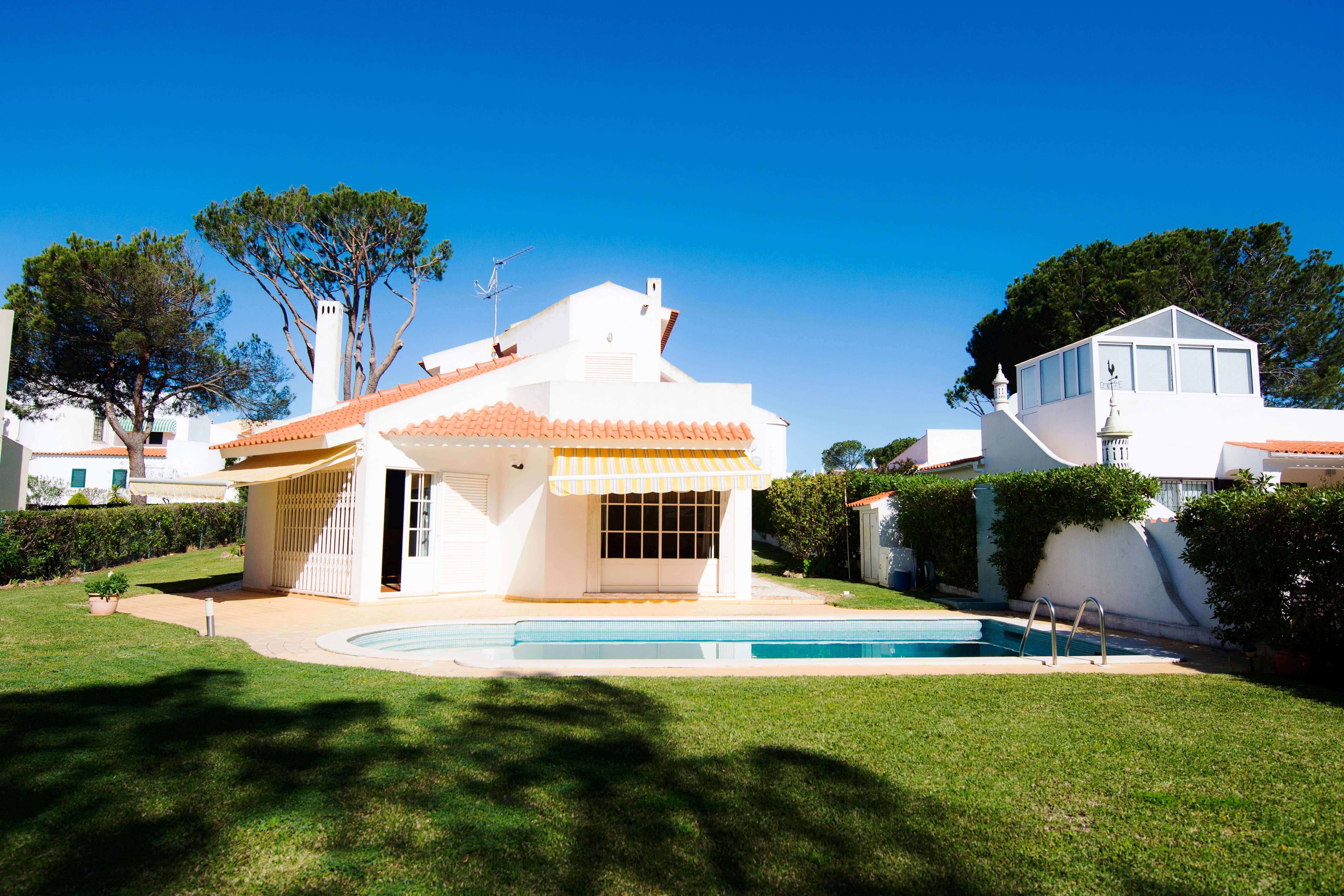 Esta é uma maravilhosa Villa, com piscina privada, localizada numa área residencial, a apenas 3 km do centro de Vilamoura. A Villa é ótima para grandes famílias ou grupos de amigos devido à sua localização e tamanho. O imóvel está localizado num lugar muito bonito, rodeado por campos de golfe e outras moradias. A Villa possui 4 quartos, dos quais 2 en-suite. Tem um terraço, uma piscina privada e uma varanda para desfrutar da sua localização. A Villa está totalmente equipada com tudo o que precisa para receber a sua família ou convidados com conforto.