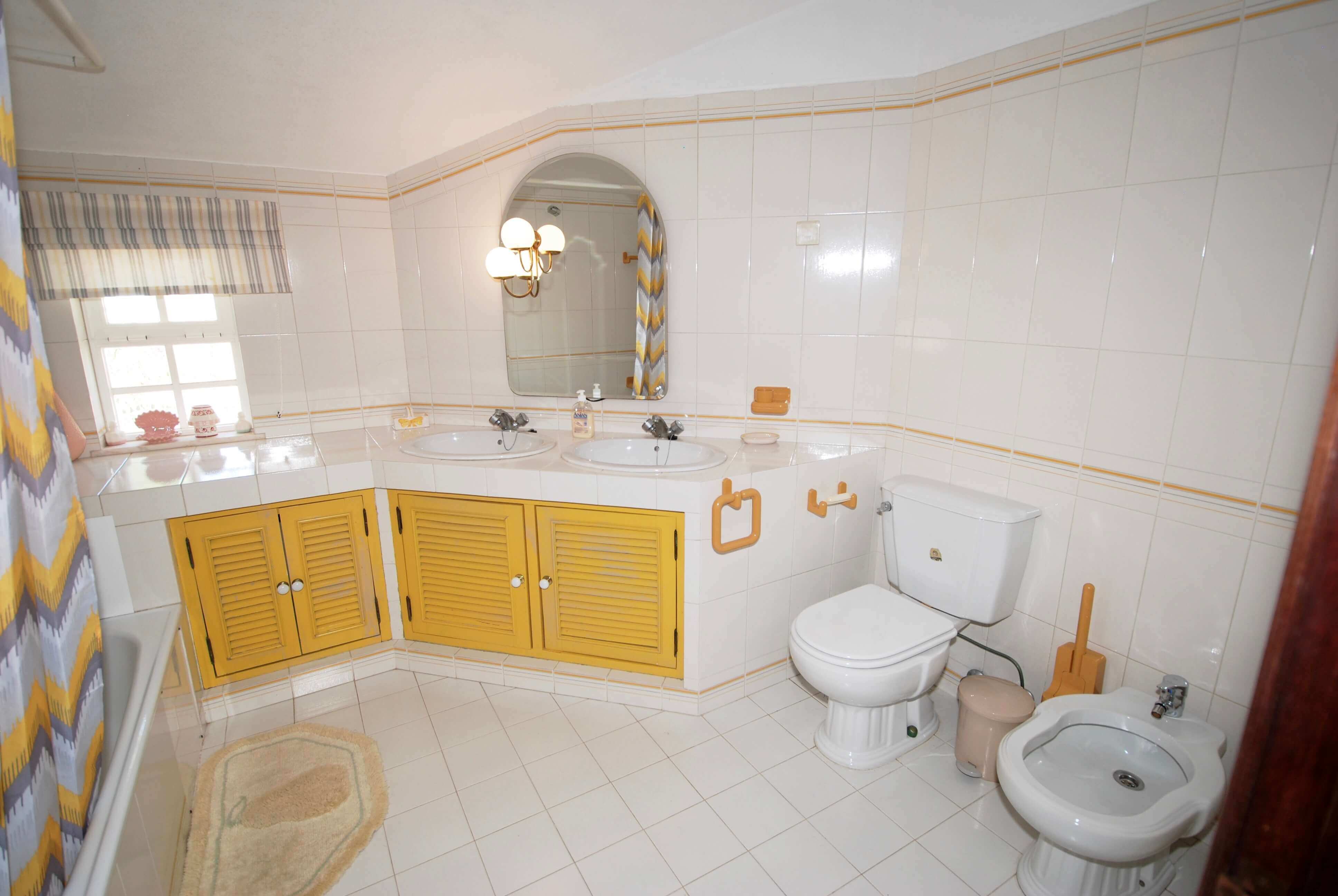 Na casa de banho principal dispõe de um chuveiro sobre banho, WC, bidé e lavatório.