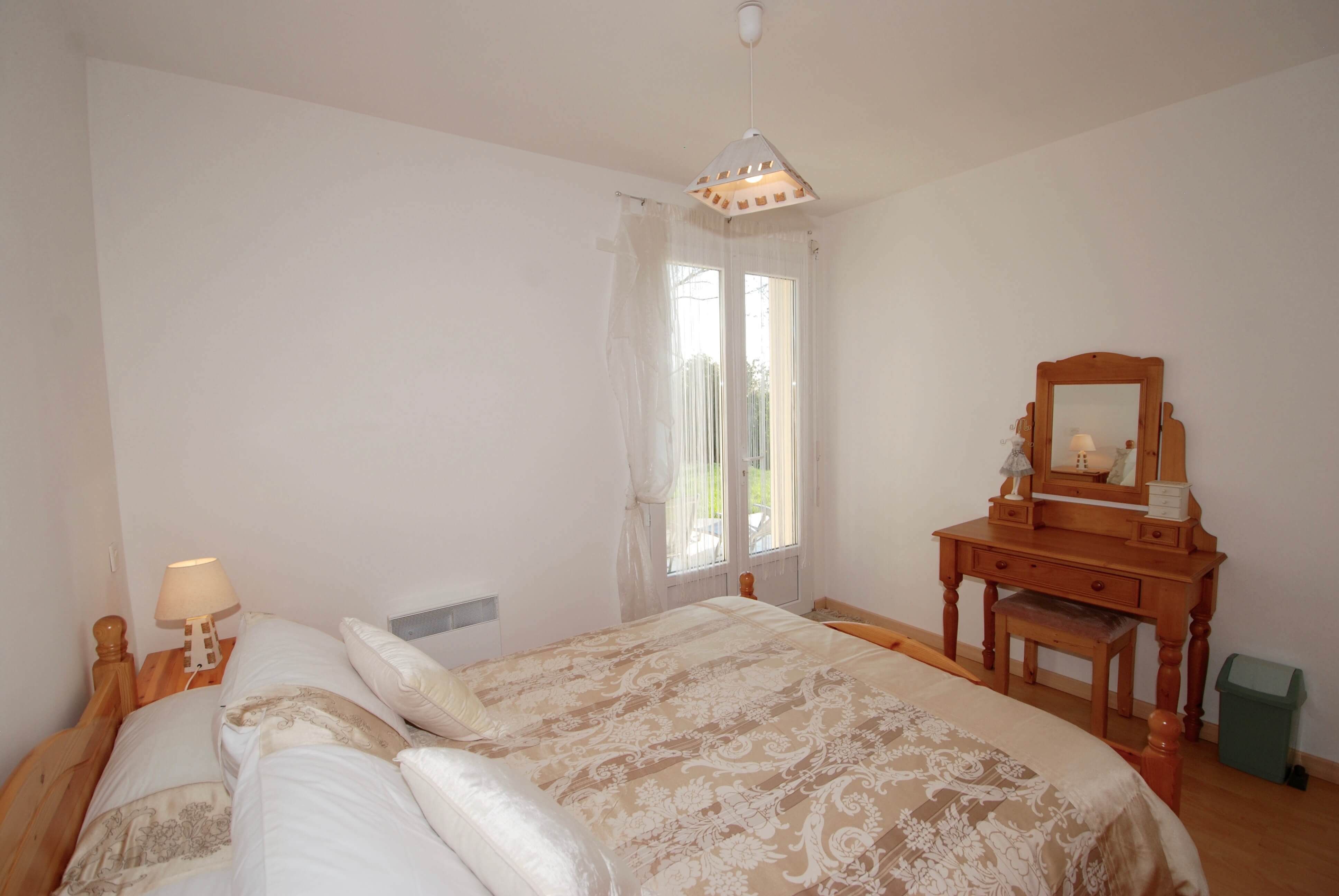 Existem três quartos duplos (cada um com uma cama de casal), persianas de madeira para o quarto três e persianas operadas manualmente para os quartos 1 e 2, que também possuem portas francesas para o pátio traseiro e para o jardim.