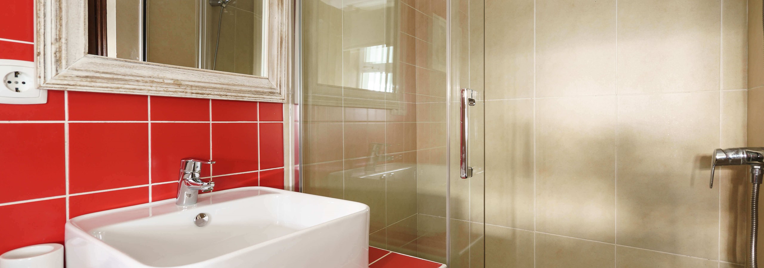 Na casa de banho principal dispõe de um chuveiro sobre banho, WC, bidé e lavatório.
