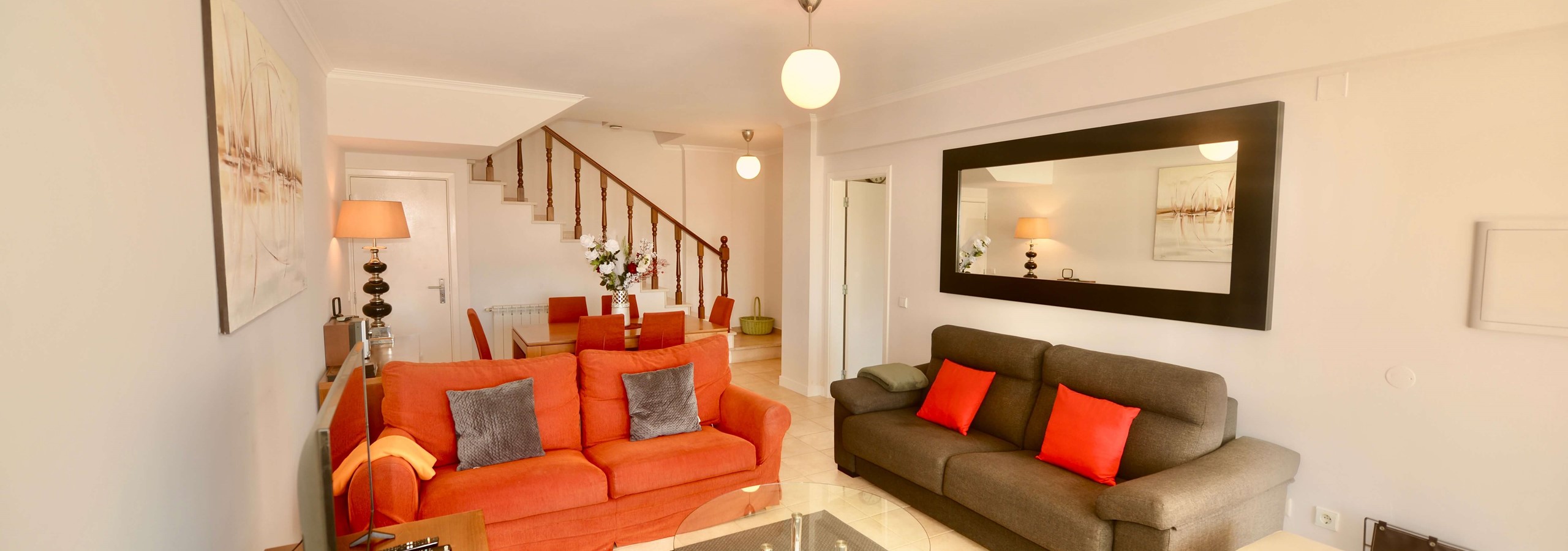 O apartamento é luminoso e espaçoso com mobiliário contemporâneo, foi equipado com um excelente padrão. A varanda privada no andar superior é grande e perfeita para entretenimento. Um pátio privado adicional com acesso a partir da sala de estar e cozinha tem acesso direto à piscina (acessível para famílias). Tanto a varanda como o pátio têm vistas para o mar e para a piscina. A propriedade também possui Wi-Fi gratuito e ilimitado para uso dos hóspedes.